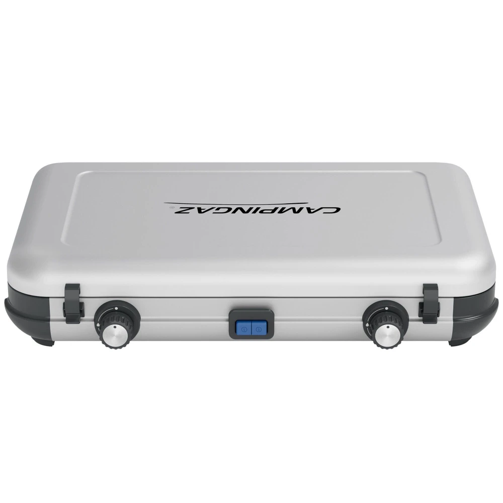 Der mit Gaszylinder betriebene Camping Kitchen 2 Maxi verfügt über zwei unabhängige Brenner, mit denen man Wärme individuell regulieren kann.