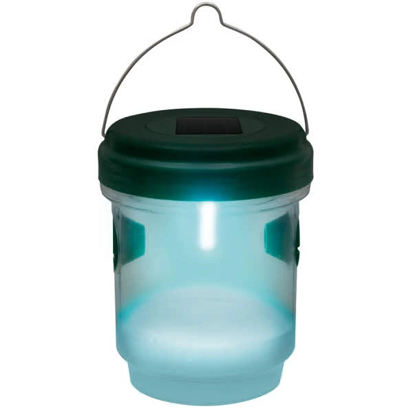 Flüssigkeit zieht tagsüber Wespen an – LED Schimmereffekt zieht nachts Mücken an. Wespen und Insekten sind besonders in der Sommerzeit auf der Terrasse oder Balkon bei Erdbeerkuchen und Kaffee nicht nur störend, sondern werden oft als Bedrohung gesehen. Ein Stich ist nicht nur schmerzhaft, sondern kann bei Allergikern lebensbedrohlich sein. Um die schöne Zeit in Ruhe genießen zu können, gibt es unsere Solarinsektenfalle.