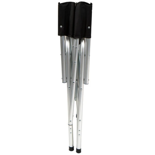 Er ist platzsparend verstaubar, besitzt ein sehr stabiles mattes Aluminium-Gestell und hat einen Sicherheits-Faltmechanismus.