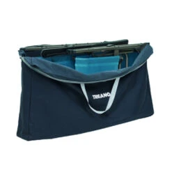 Klappbarer Kinderstuhl mit kindersicherer Verriegelung und Schnellöffnungs-System. Rahmen aus beschichtetem Stahl, Sitz aus beschichtetem 600D Polyester. Komplett mit Tragetasche.